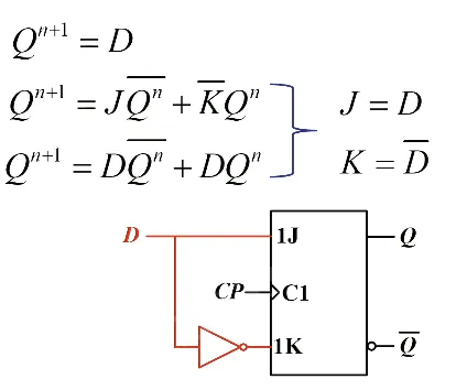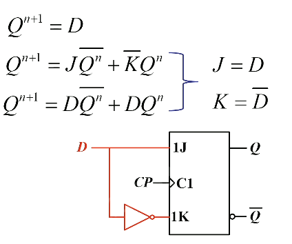 基本方法:已有触发器的特性方程和待实现触发器特性方程联立,把已有触发器的输入用待实现触发器的输入表示。