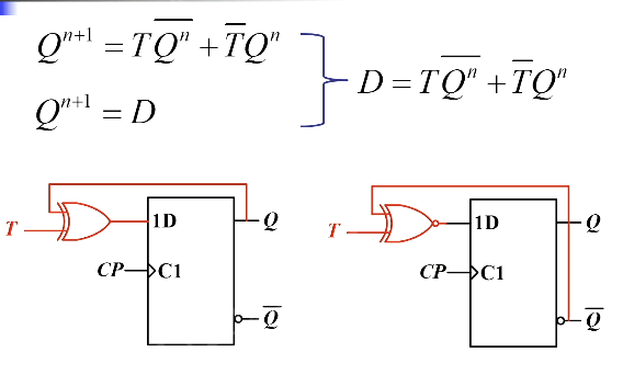 T 触发器:当触发器有效时, 时保持, 时翻转