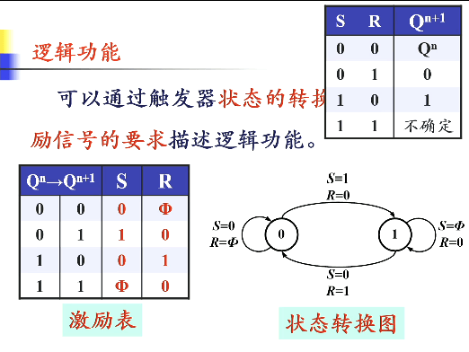 - 保持功能:,,由于两个都是低电平有效,此时两个都是无效的。此时状态保持住,数据记忆了。我们记触发器接收信号之前所处的状态称为初态,符号 ;接收信号之后建立的新状态叫做次态,符号 。次态不仅和输入信号有关,还和次态有关。